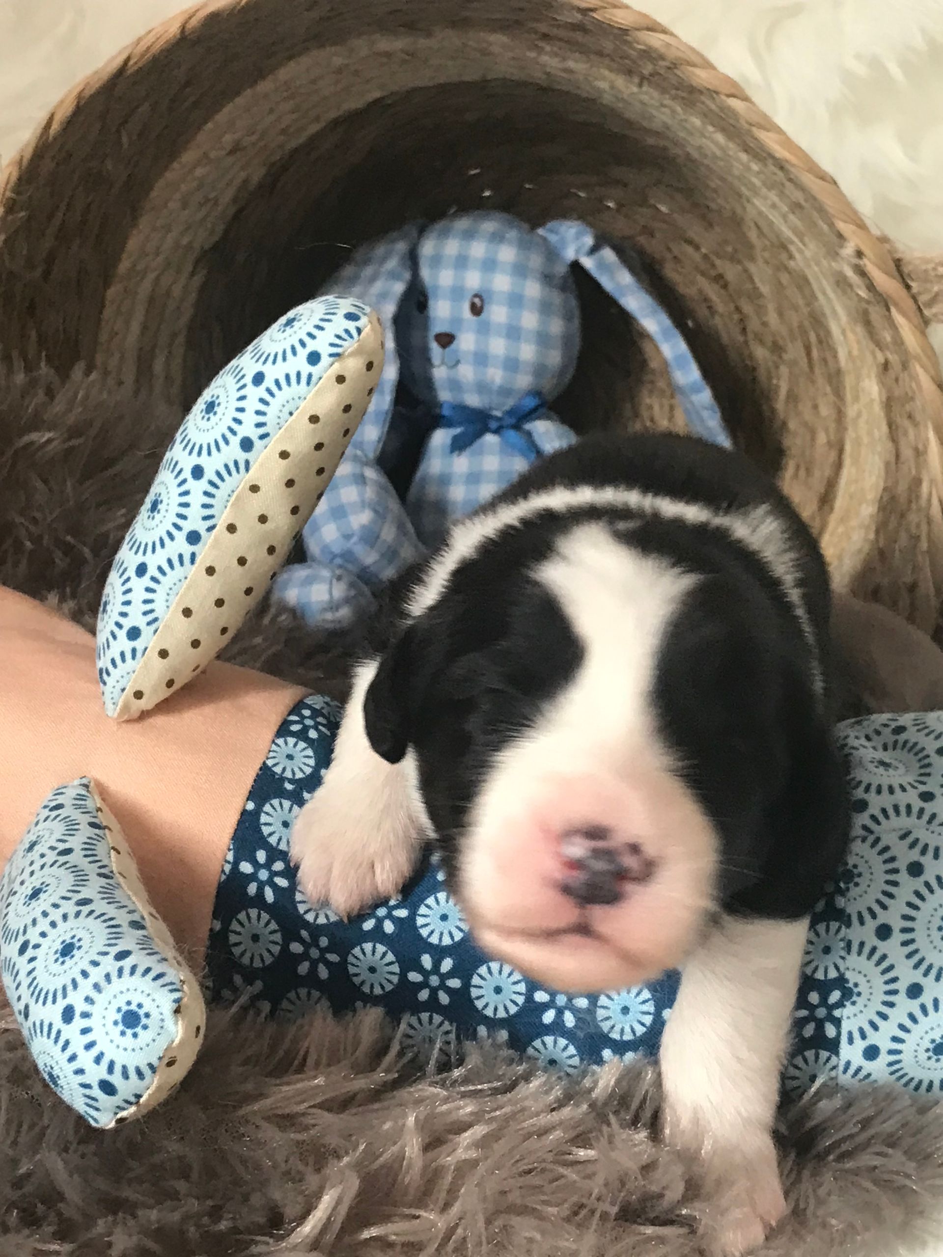 Uns hat auch überrascht das es ein bunter Korb mit Welpen wurde