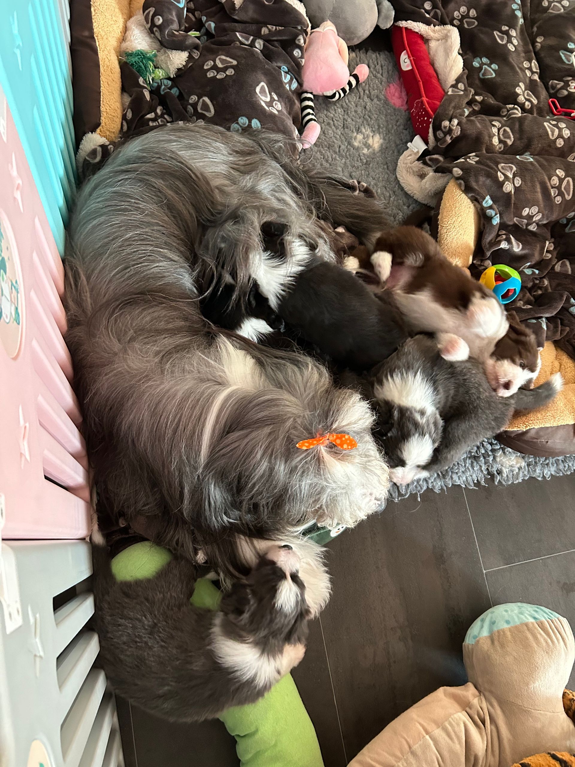 Die kleinen hängen nur an der Milchbar ab und haben schon alle gut zugenommen (verfressen wie der Papa)😂
